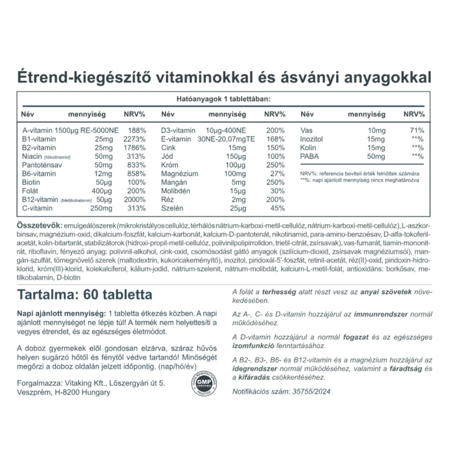 Napi egyetlen tabletta tartalmazza az összes szükséges vitamint és ásványi anyagot abban a minimum mennyiségben, amivel célszerű kiegészíteni a napi étrendet.