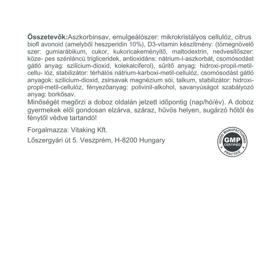 Ha fontos, hogy minél természetesebb formában pótold a C-vitamint, ez a készítmény megfelelő választás. A Vitaking C- és D-vitamin komplex az 1000mg C-vitaminon kívül tablettánként tartalmaz még 50mg citrus bioflavonoidot.