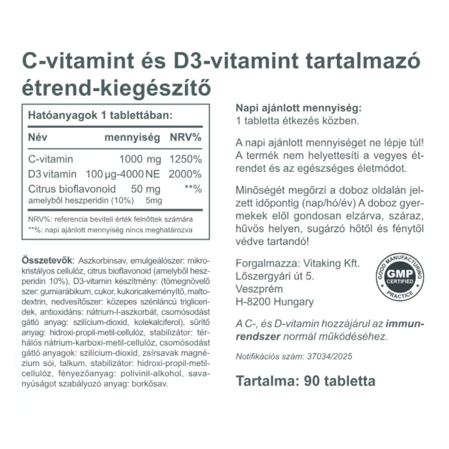 Ha fontos, hogy minél természetesebb formában pótold a C-vitamint, ez a készítmény megfelelő választás. A Vitaking C- és D-vitamin komplex az 1000mg C-vitaminon kívül tablettánként tartalmaz még 50mg citrus bioflavonoidot.