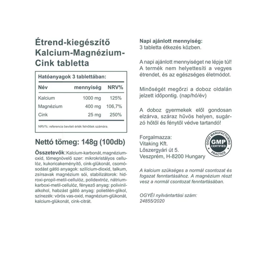 A Vitaking CalMag cink kalcium-magnézium-cink komplex megfelelő arányban tartalmazó a szervezet számára ezen ásványi anyagokat.