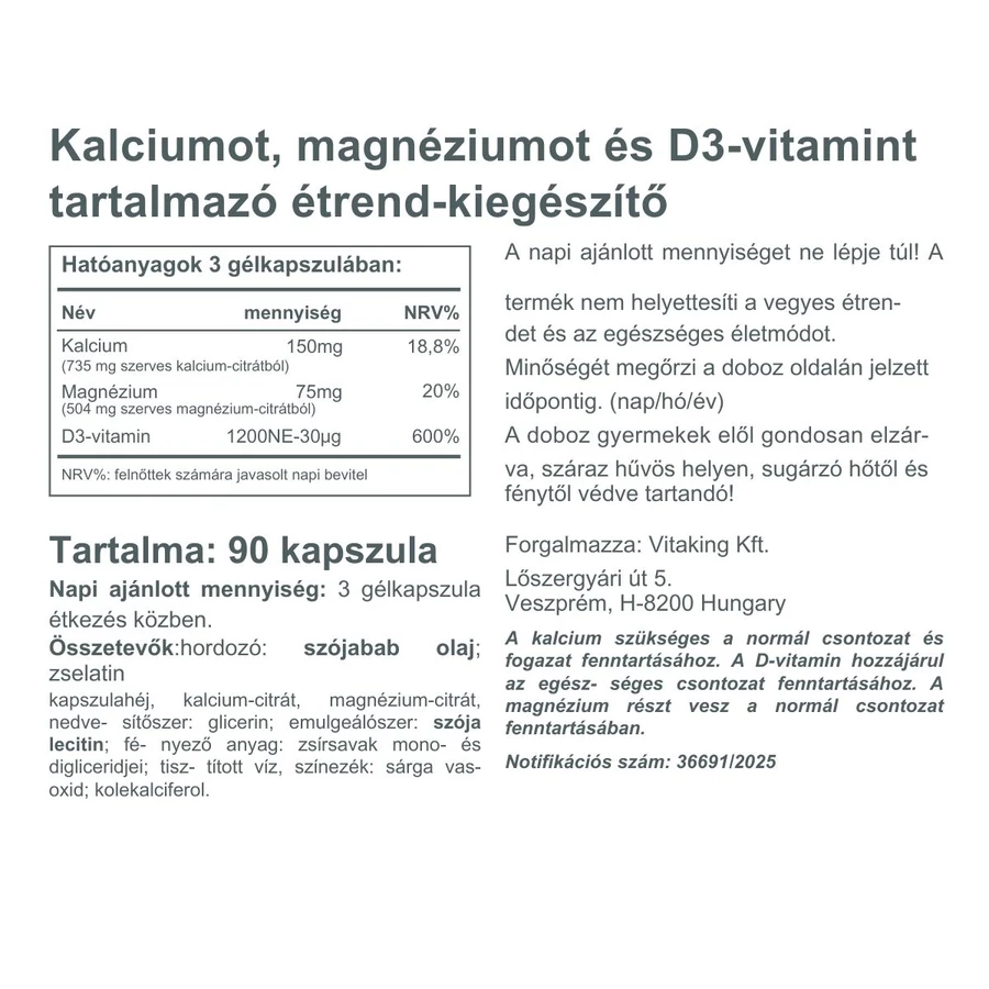 A Vitaking CalMag citrát D3-vitaminnal szerves formában tartalmazza a két legfontosabb ásványi-anyagot, ami kitűnő felszívódási arányt és hasznosulást biztosít a többi (jellemzően szervetlen ásványisó) termékekhez képest.
