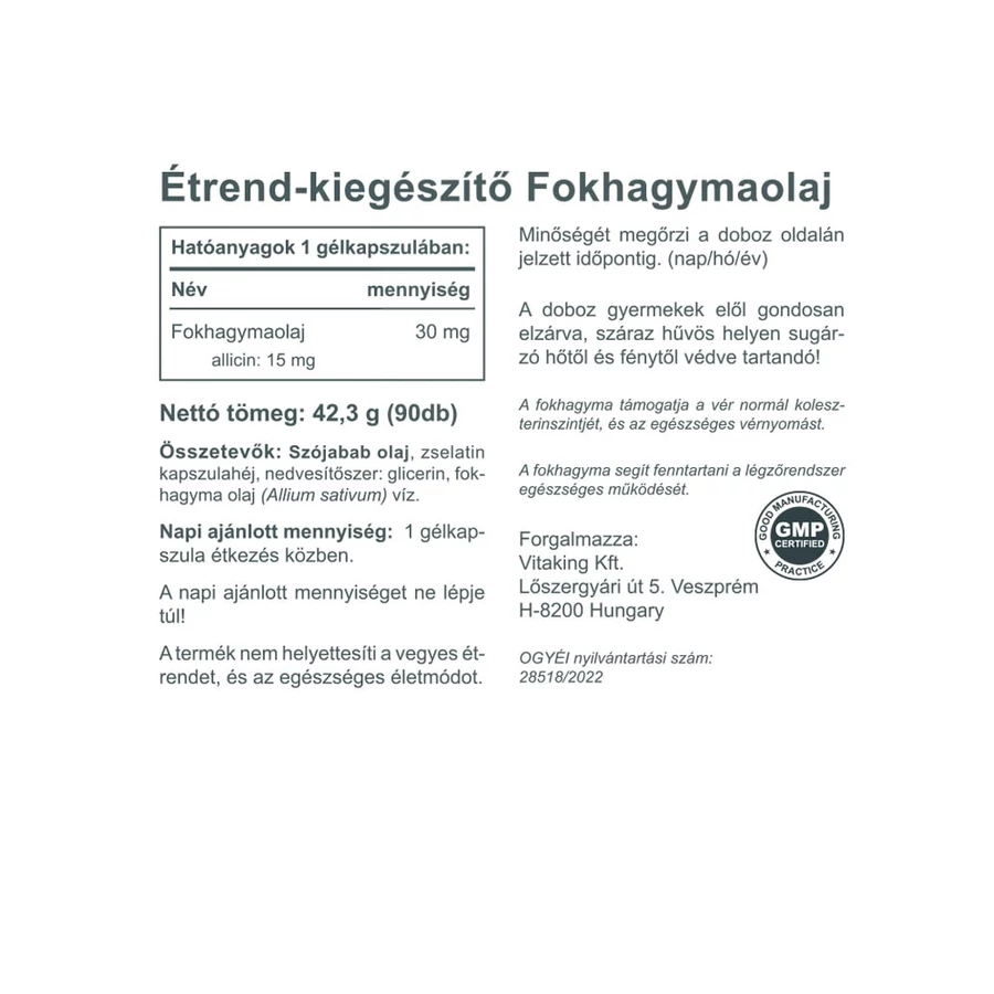 Vitaking fokhagyma olaj – a fokhagyma ereje kapszulába zárva.