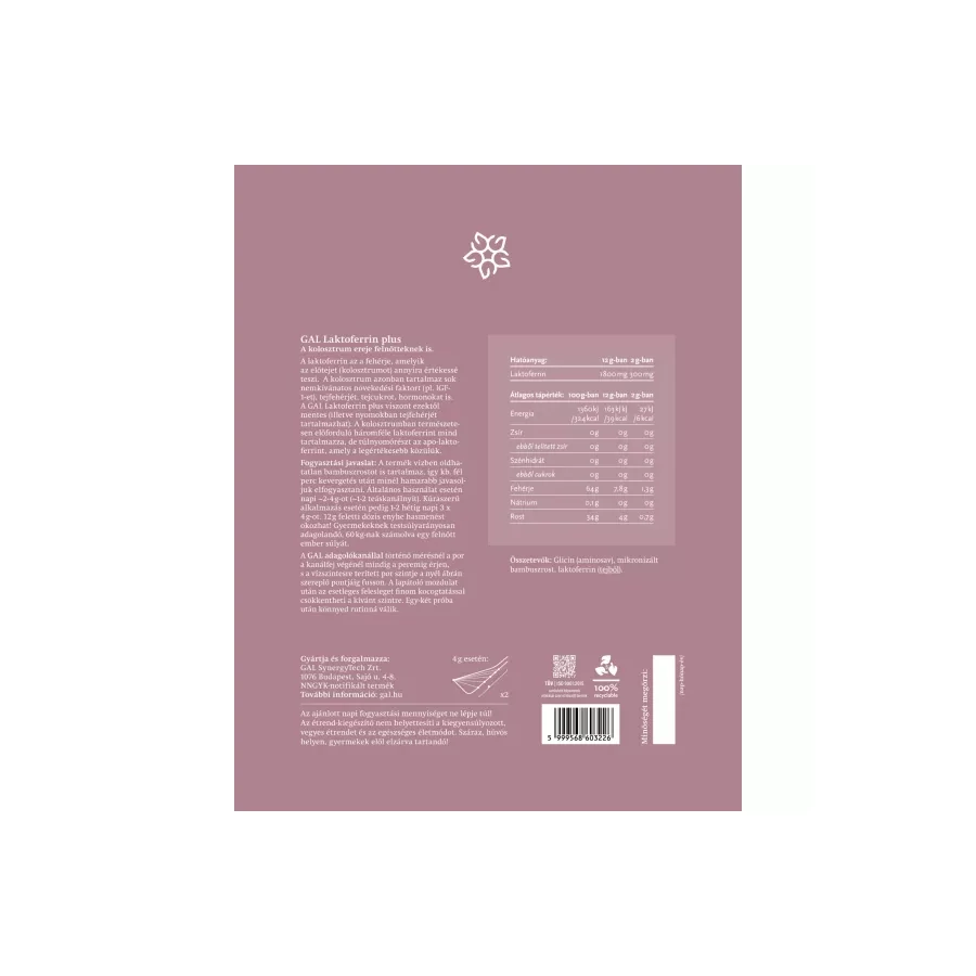 A laktoferrin az a fehérje, amelyik az előtejet annyira értékessé teszi. Ez utóbbi azonban tartalmaz sok nemkívánatos növekedési faktort, tejfehérjét, tejcukrot, és hormonokat is, amelyektől a GAL Laktoferrin plus mind mentes, illetve nyomokban legfeljebb tejfehérjét tartalmazhat. Az előtejben természetes módon előforduló háromféle laktoferrint mind magában foglalja, de túlnyomórészt azt az apo-laktoferrint, ami a legértékesebb közülük.