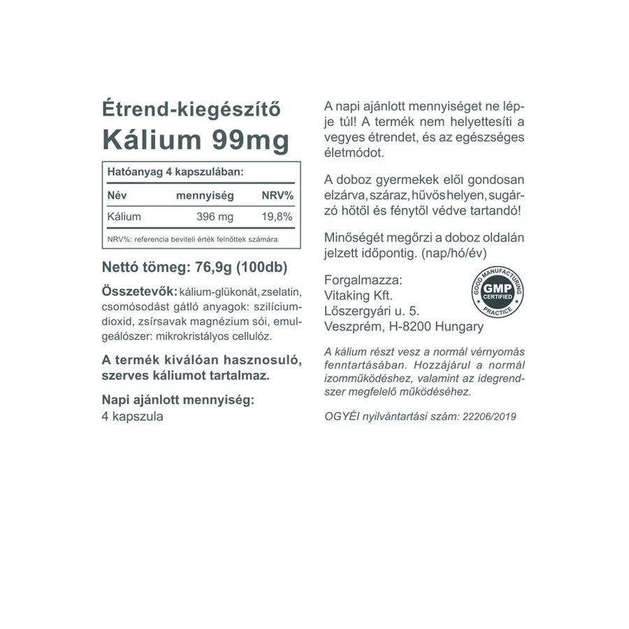 A kálium (potassium) szervezet harmadik legnagyobb mennyiségben előforduló ásványi anyaga, a kalcium és a foszfor után, amely túlnyomórészt a sejtek belsejében van jelen és fontos szerepet játszik azok normál működésében. A szervezetben a nátriummal együtt az idegrendszeri jelek továbbítását, az izom-összehúzódás elindítását, a vérnyomás és a szívritmus szabályzást, valamint a sejtek tápanyagfelvételét végzik.