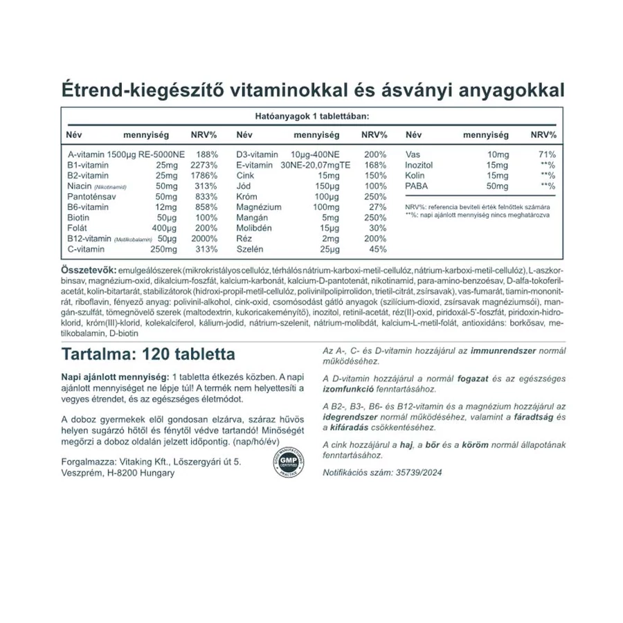 Napi egyetlen tabletta tartalmazza az összes szükséges vitamint és ásványi anyagot abban az alap mennyiségben, amel célszerú kiegészíteni az értendet!