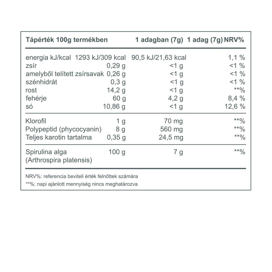 A Spirulina alga tökéletes összetételű tápanyag, több vitamint, enzimet(klorofill), ásványi anyagot és aminosavat tartalmaz, mint sok más élelmiszer, ezért használhatjuk táplálék-kiegészítőként.