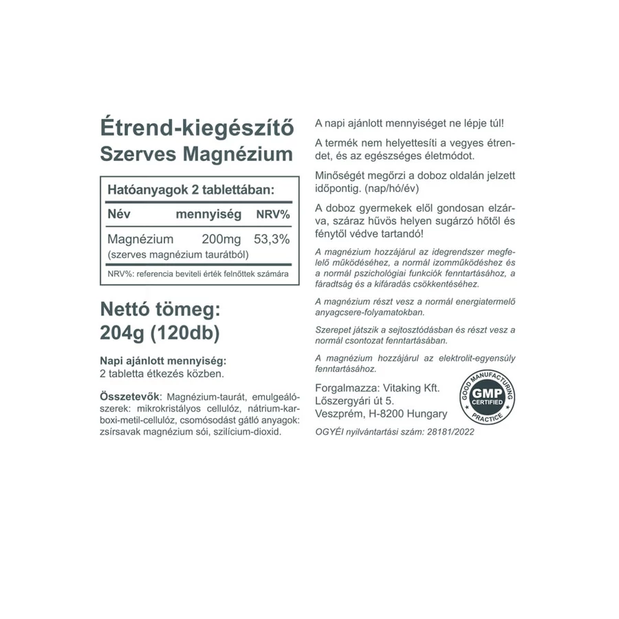 Kevés ember van tudatában annak, hogy mennyire fontos a magnézium. Az oxigén, a víz és a fő tápanyagok (zsír, protein, szénhidrátok) után, a magnézium a talán egyik legfontosabb építőelem, amire a szervezetnek szüksége van. A Vitaking Szerves Magnézium Taurát termék kiváló magnézium forrás.