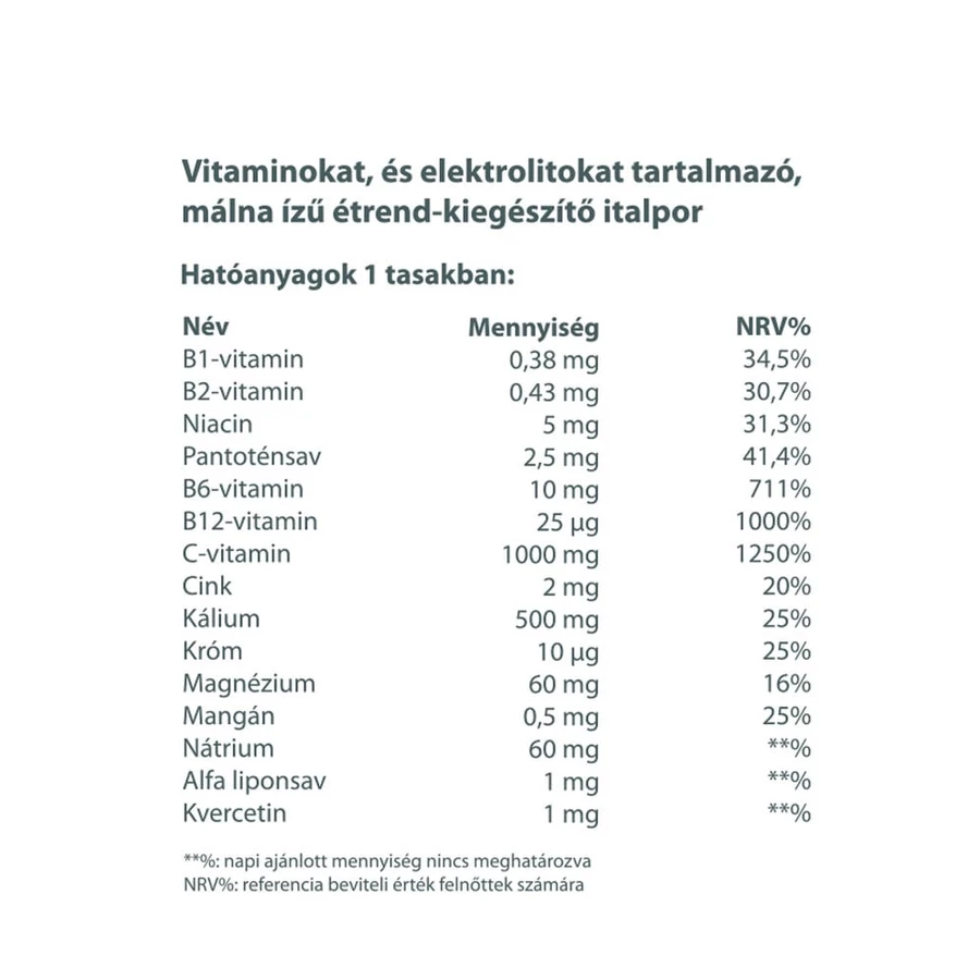 Az italpor a vitaminokon és ásványi anyagokon kívül tartalmaz még alfa liponsavat és kvercetint is.