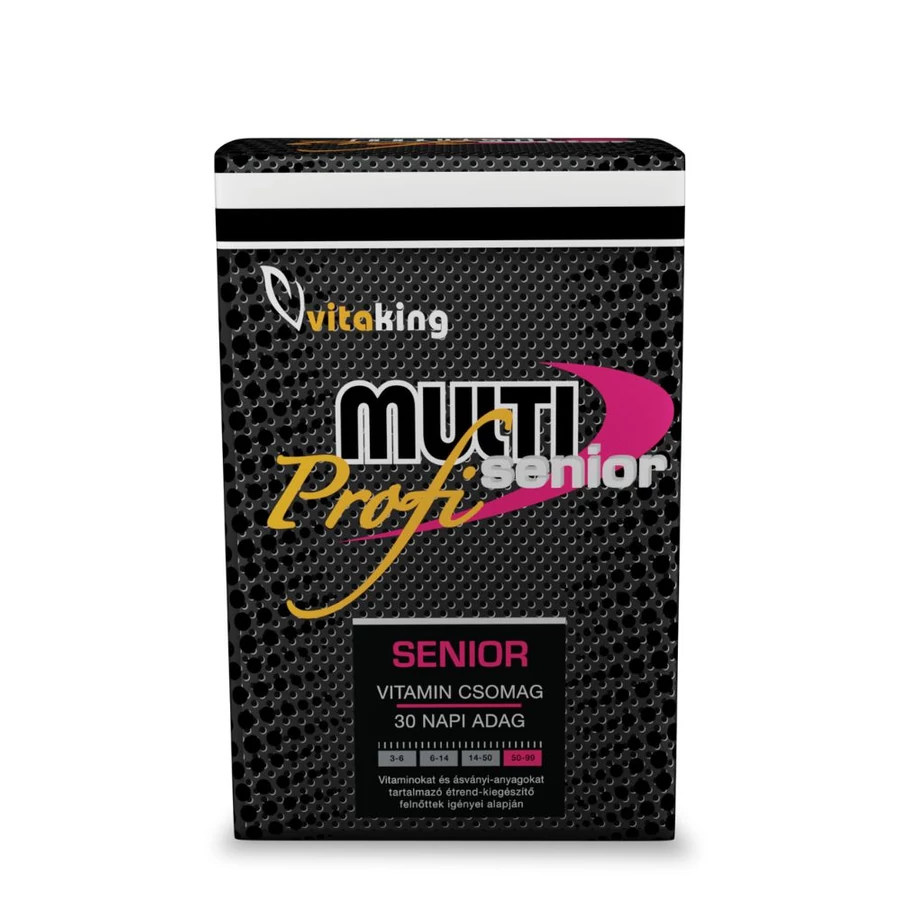 50 éves kor felett a Vitaking Multi Senior Profi csomagot javasoljuk, minden napi étrend-kiegészítésre. A napi rendszeres fogyasztás segít, hogy vitaminokból ásványi anyagokból és nyomelemekből bőségesen el legyen látva a szervezeted.