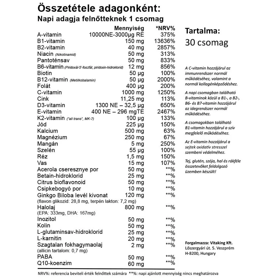 Kinek nem javasoljuk a Vitaking Multi csomagok szedését?