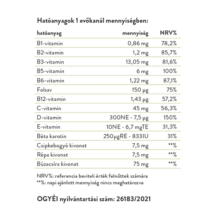 A napi ajánlott mennyiséget ne lépje túl! A termék nem helyettesíti a vegyes étrendet, és az egészséges életmódot.